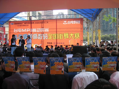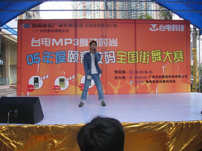 連續多日陰雨的廣州在4月2日這天奇跡般的晴朗,由商科集團贊助的“臺電MP3 舞動時尚—全國街舞邀請賽”也在這天正式拉開帷幕。魔幻的舞步、激情的