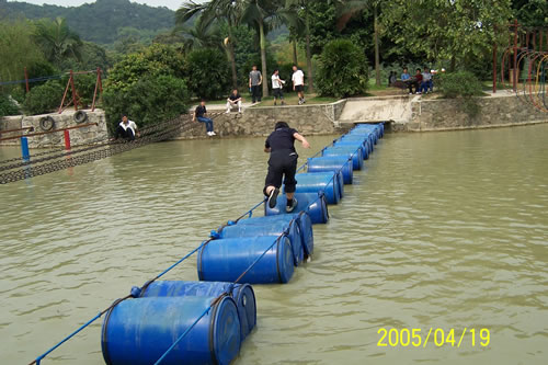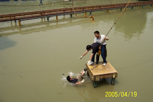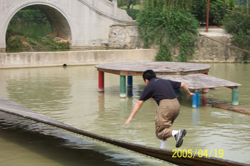看我來個少林十絕水上飄。
