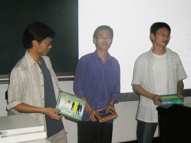 13   終于到了我們的抽獎(jiǎng)時(shí)刻了,特等將獲得398元的精美皮具,一等獎(jiǎng)獲得臺(tái)電128M  MP3一個(gè).......就這樣,快樂(lè)的兩個(gè)半小時(shí)就過(guò)去了。