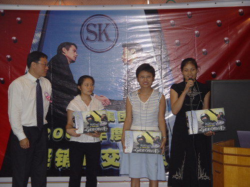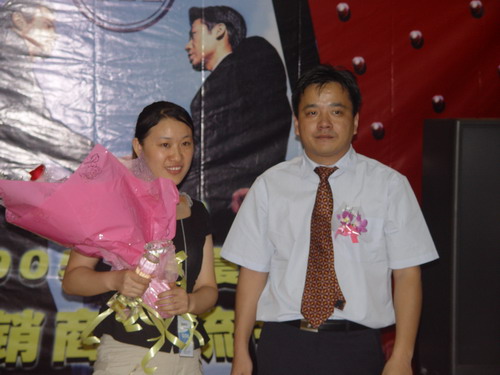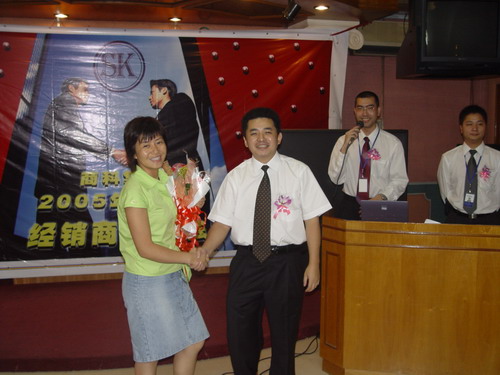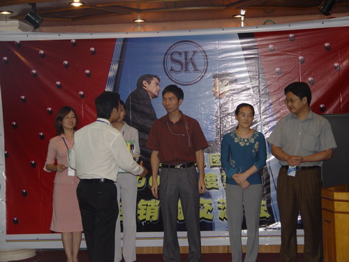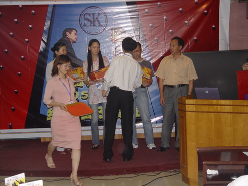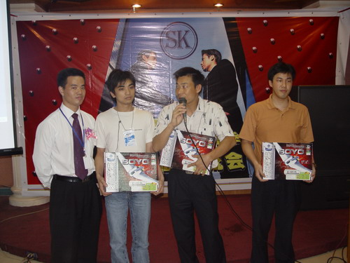 又一波高潮來了,介紹完產品還有大抽獎呢。幸運之神會落在誰的頭上呢,K8 主板,6200顯卡,256M MP3,康寶光驅,哇,商科好大手筆哦,得獎的經銷商笑逐顏開