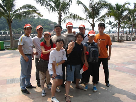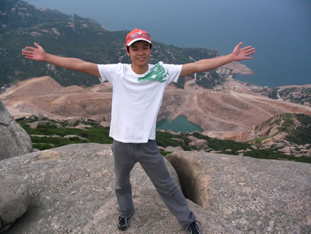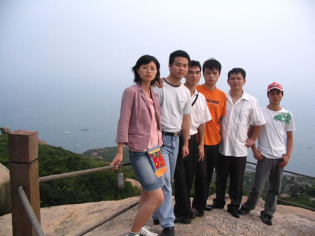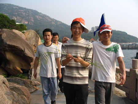 歡呼聲中我們踏上了十一之旅,來到富有豐富人文、歷史景觀的外伶仃島,外伶仃島離香港長洲島只有6海里,主峰伶仃峰高達311.8米,是萬山群島最高峰。站在伶仃峰可清楚的觀望香港的景色(如太平山、青馬大橋等香江景物)。天氣晴朗不起霧的時侯,清晨在山頂等候太陽從大海的地平線上跳出,冉冉升起,整個洋面一片金黃,霞光萬丈,美不勝收,真是一大奇景可惜我們這次沒有看到此景!!!!伶仃洋上最有影響,千古傳誦的是文天祥“人生自古誰無死、留取丹心照汗青”這一千古絕唱。這是毛澤東主席生前手書的文天祥《過伶仃洋》詩的石刻。