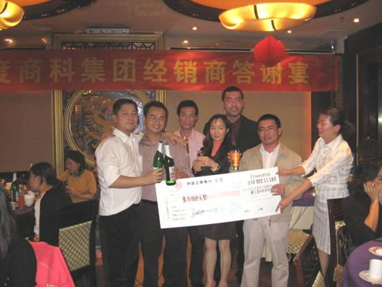 2006年1月17日,商科集團廣州分公司與100多位經銷商濟濟一堂,舉行了經銷商答謝宴,感謝過去一年各位經銷商對商科集團的支持,當晚還頒發了“年度個人貢獻獎”,“年度公司貢獻獎”,“年度優秀代理商獎”,獎品和獎金豐厚,氣氛熱烈,讓我們一起看看當晚的盛況。