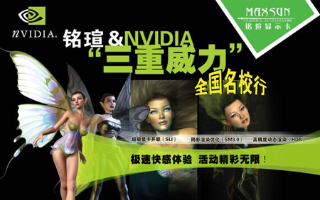全球最大的顯示芯片供應商之一的NVIDIA早已家喻戶曉,而銘瑄顯卡是國內最大的顯卡品牌之一,長期以來雙方一直保持著良好的合作關系,此次再度合作舉行校園巡展活動,正是“三重威力”先進顯示技術推廣的延續。