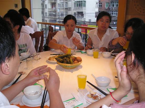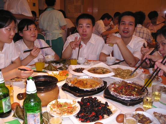 人都到齊了,怎么還沒有上菜啊?來,我們先干一杯“祝大家端午節快樂”!