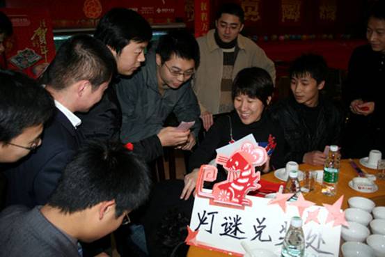 先到場的工作人員早已經為大家準備好了燈謎競猜活動。在晚會開始之前,先到的同事和領導們興致勃勃的加入燈謎活動之中。