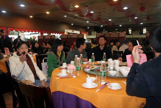 在晚會開始之前,先到的同事們興高采烈的在一起交流,分享著過去一年的喜悅與快樂。經過了一年辛勤、緊張的工作,終于可以放松一下了。