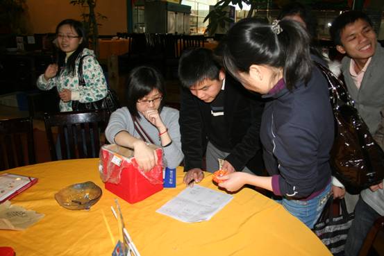 在晚會開始之前,公司準備了有趣的燈謎競猜活動,先到的同事愉快的加入到活動中。