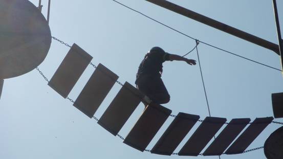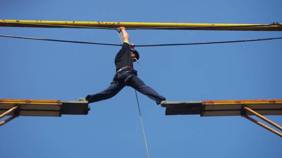 十點二十分,高空項目。訓練還沒開始,光是它8米這個數字都已讓人聞而生畏了。但所有人都克服了心中的恐懼,不管是輕松的還是艱難的,不管是哭著的還是笑著的,都突破心中極限,順利的完成了任務!