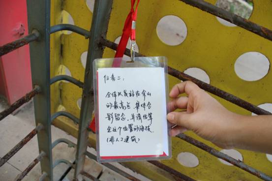 在時間到達之前,每個組的十個尋寶任務都基本上完成了,陸續在山下的廣場集合。手中的任務卡原來是個拼圖,大家一起,拼出了大大的商科LOGO
