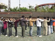 第三環節(“大團體”協作):繩圈力量。糅合了各個小組,更加講究成員間的合作、協調,一環扣一環,環環緊扣。