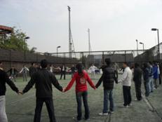 第一環節(熱身):找朋友,圍圈,“人椅”(拉近彼此間的距離)