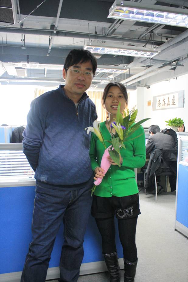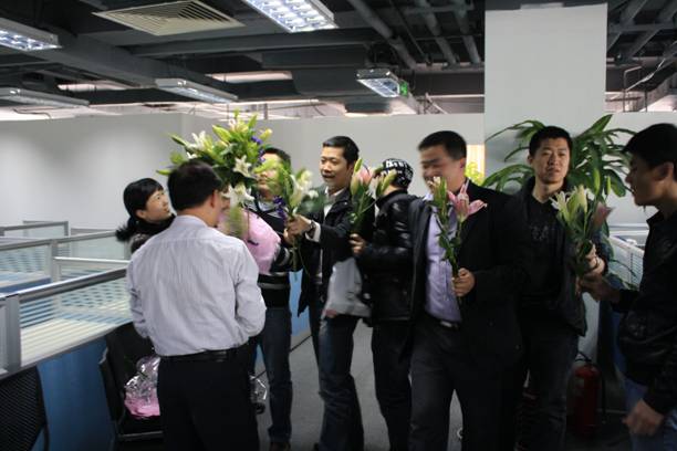 在今天,男同事們向平時(shí)與他們工作密切銜接的女同事獻(xiàn)花,向她們表示深深的謝意。感謝她們平時(shí)的配合和支持!