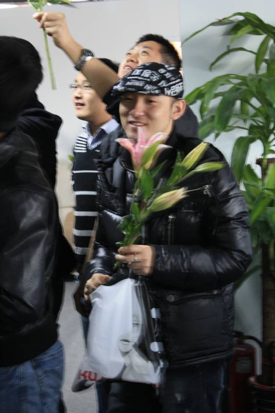 拿了花就趕緊跑,不知他此時(shí)在想什么,看他和后面那兩位的表情應(yīng)該是高興和欣喜吧!