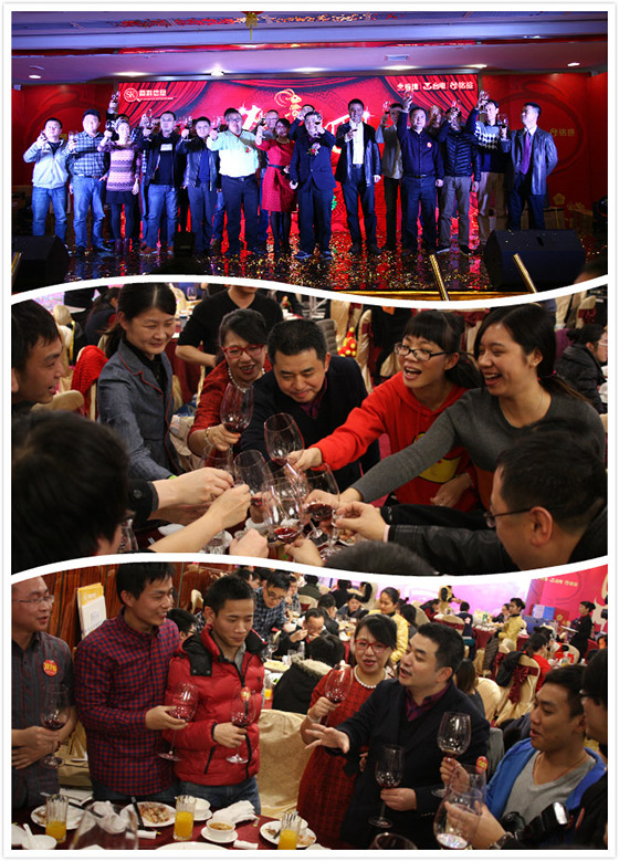 看完精彩的節(jié)目,天色已完全暗下來(lái),大家已饑腸轆轆,酒店已經(jīng)開(kāi)始端上可口的飯菜。晚宴開(kāi)始前,孫總上臺(tái)為大家獻(xiàn)上新年的祝福,并攜同各部門(mén)經(jīng)理上臺(tái)為大家祝酒。祝酒結(jié)束,晚宴正式開(kāi)始