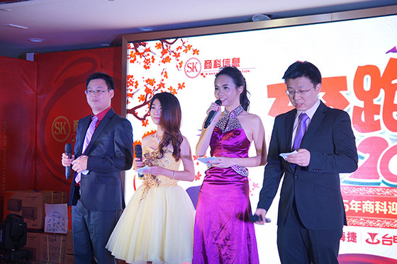 隨著人員的到來(lái),商科集團(tuán)2015年迎春聯(lián)歡會(huì)在下午3點(diǎn)鐘正式開(kāi)始。隨著四位主持人也閃亮登場(chǎng),這場(chǎng)盛會(huì)拉開(kāi)了序幕!