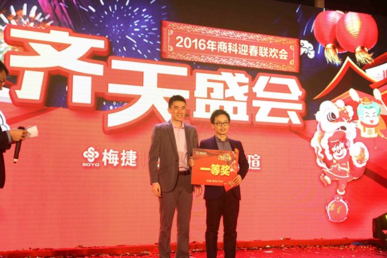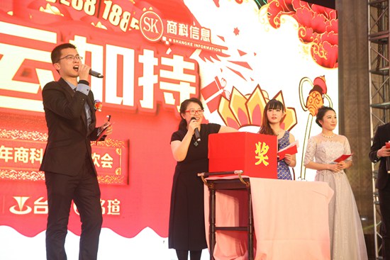 商科總經理孫武安先生首先為大家獻上新年祝詞。宴會開始進入第一環節“大圣歸來 勇挑重擔”——年度優秀員工頒獎盛典。公司為在過去的2015年里辛勤為商科默默奉獻、表現優異的員工頒發榮譽勛章,每位獲獎人員都獲得了獎狀和豐厚的獎金。