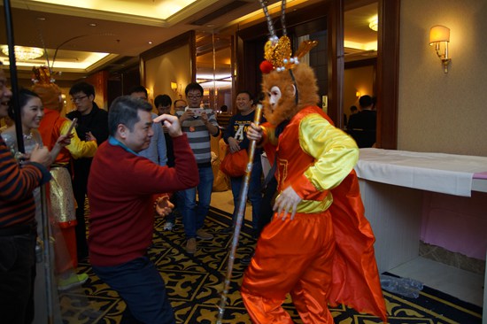 猴年怎能少了猴哥,這是商科每年的特色項目,而今年的財神爺換成了孫悟空,猴哥八戒一樣為我們帶來了特別的禮品!現場一片歡笑聲!