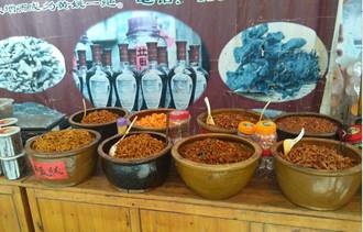小鎮的街道建筑古色古香,青灰石板小路。可能是因為我們白天到,游客很少,目光所到大多是年邁的老人,少量的商鋪開著門,賣著醬菜,糯米酒、桂花香、青梅酒等釀酒,很多酒吧大門緊閉。
