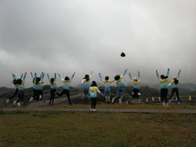第一站:飛天山,來一組財務(wù)小家庭的全家福,純手工制作的橫幅了解一下。