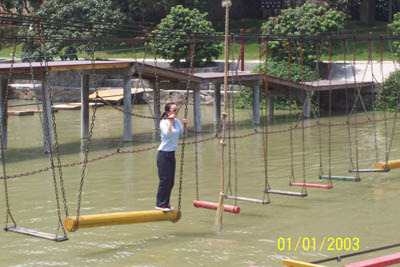 來個“金雞獨立”架勢,挑戰(zhàn)自己的勇氣。