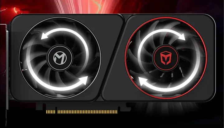 MAXSUN Intel Arc B570 Milestone 10G采用雙風(fēng)扇正逆轉(zhuǎn)導(dǎo)流散熱設(shè)計,9CM FROST風(fēng)扇搭配11幅密集扇葉,風(fēng)扇旋轉(zhuǎn)方向不同,減少繞流,增加進風(fēng)量,顯著提升散熱效能,讓顯卡在高負(fù)載下也時刻冷靜。在10分鐘烤機實測中,MAXSUN Intel Arc B570 Milestone 10G溫度低至65度。(*測試數(shù)據(jù)來源于銘瑄實驗室,基于此配置進行測試:Motherboard-MS-Terminator B760M D4 ICE;CPU-英特爾®酷睿™i7-13700K處理器;RAM-DDR4 4000 16-16-16-36,實際性能會因硬件配置、軟件環(huán)境等多方面差異而存在變化)