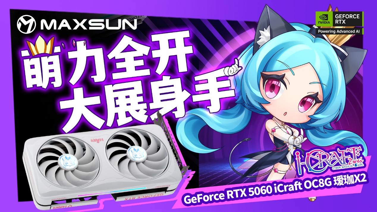 若你是學生黨或偏愛緊湊機箱,追求1080P分辨率下的高幀率對戰,銘瑄GeForce RTX 5060 iCraft OC8G 璦珈X2顯卡+銘瑄iCraft B760M CROSS璦珈主板的組合,既能以高性價比滿足需求,更能將二次元顏值拉滿,讓桌面主機成為宅家吸睛亮點。