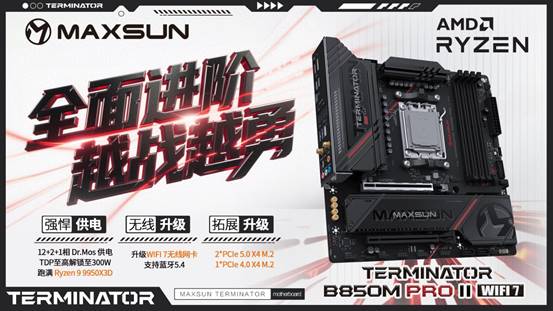 自銘瑄終結(jié)者B850M PRO系列主板推出以來一直廣受好評,此次終結(jié)者 PRO再度進化,推出二代新品MS-Terminator B850M PRO II WIFI7,從外觀、拓展到網(wǎng)絡(luò)實現(xiàn)多方位戰(zhàn)力升級,以更硬核的配置,為玩家打造新一代高性價比裝機利器。