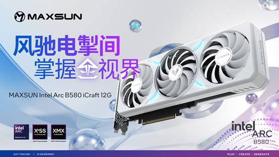 值得一提的是,XeSS 3多幀生成技術將全面兼容所有已支持XeSS 2的游戲,且支持所有配備XMX核心的銳炫GPU(包括Xe 1、Xe 2及Xe 3架構硬件)。MAXSUN Intel Arc B580 iCraft 12G顯卡無需額外升級硬件,只需通過驅動更新就能一鍵解鎖這項強大技術,以超高性價比獲得幀率飛躍式提升,讓新年開黑體驗再升級。