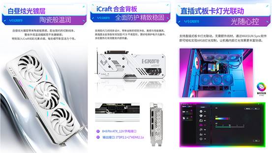 值得一提的是,MAXSUN Intel Arc B580 iCraft 12G還支持直插式板卡燈光聯動,無需額外線材,通過MAXSUN Sync軟件即可實現ARGB燈光控制,光隨心控,打造氛圍感拉滿的電競空間。每一次開黑對戰,都能在光影流轉中感受電競的熱血與激情,細節之處盡顯個性與活力。