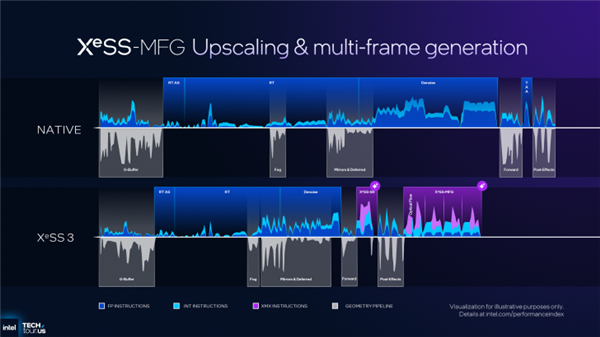 值得期待的是MAXSUN Intel Arc B580 iCraft 12G顯卡對英特爾即將上線的XeSS 3多幀生成技術的高度適配。作為XeSS技術的重磅升級,XeSS 3的多幀生成技術基于AI驅動,通過在原有兩幀畫面之間額外插入三幀AI生成圖像,實現輸出幀率提升至原始水平的4倍。在提升流暢度的同時,有效減少了低幀率環境下常見的畫面撕裂與偽影問題,《三角洲》中的高速轉移、準確射擊體驗將再上一個臺階。