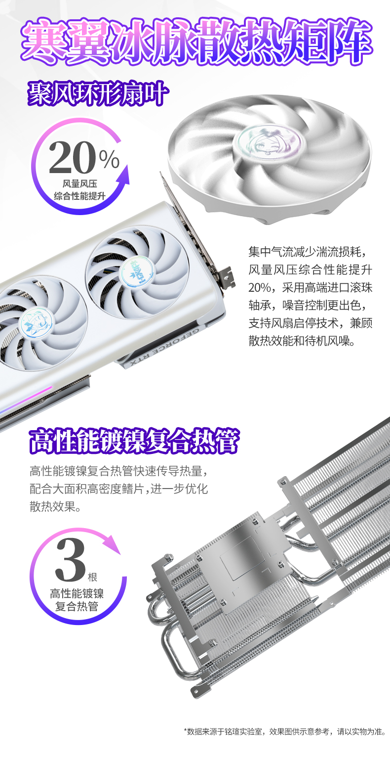長時間沉浸式游戲,散熱與噪音控制是關(guān)鍵。銘瑄GeForce RTX 5060 Ti iCraft OC8G 璦珈顯卡配備了寒翼冰脈散熱矩陣,采用三風(fēng)扇搭配高性能鍍鎳復(fù)合熱管快速傳導(dǎo)熱量,配合大面積高密度鰭片,進(jìn)一步優(yōu)化散熱效果。風(fēng)扇采用高端進(jìn)口滾珠軸承,聚風(fēng)環(huán)形扇葉設(shè)計能集中氣流、減少湍流損耗,讓風(fēng)量風(fēng)壓綜合性能提升 20%,同時噪音控制更出色。更貼心的是智能啟停技術(shù),低負(fù)載時風(fēng)扇自動停轉(zhuǎn),實(shí)現(xiàn) "零噪音" 待機(jī);高負(fù)載激戰(zhàn)時刻,風(fēng)扇迅速啟動高效散熱,將核心溫度穩(wěn)穩(wěn)控制,讓玩家既能享受穩(wěn)定性能,又能遠(yuǎn)離煩人的噪音干擾,全身心沉浸在《明日方舟:終末地》的冒險世界中。