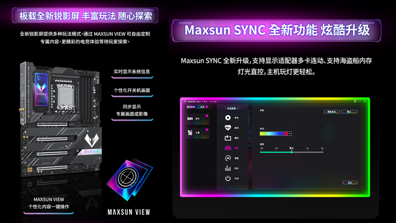 在功能設計上,銘瑄iCraft Z890 Pacific主板亮點滿滿。板載的全新銳影LED屏,能實時顯示CPU溫度、內存頻率、供電狀態(tài)等核心參數(shù),更有多種玩法模式可選。激戰(zhàn)游戲時無需切換監(jiān)控軟件,就能直觀掌握硬件運行情況,實用性拉滿。還支持RGB光效同步,可與顯卡、內存等外設實現(xiàn)燈光聯(lián)動,隨心切換炫酷燈光效果,無論是黑色電競主機,還是純白海景房裝機,都能完美適配,輕松打造氛圍感拉滿的裝機效果。
