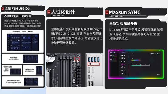 除了強悍的性能,這款主板在操作便捷性和個性化上也格外貼心。全新升級的 PTM UI BIOS,借鑒了手機 APP 的交互邏輯,采用模塊化設計,交互層級不超過 2 層?ㄆ降慕缑嬉荒苛巳唬退闶茄b機新手,也能輕松搞定 BIOS 設置。分布式 Debug 診斷燈和 CLR_CMOS 快捷按鈕,更是能快速定位故障,讓裝機過程省心又省力。它還支持RGB光效同步,可與顯卡、內存等外設實現燈光聯動,炫酷燈光效果隨心切換,無論是打造酷炫的黑色電競主機,還是組裝顏值爆表的純白海景房,都能完美適配,輕松拿捏氛圍感。